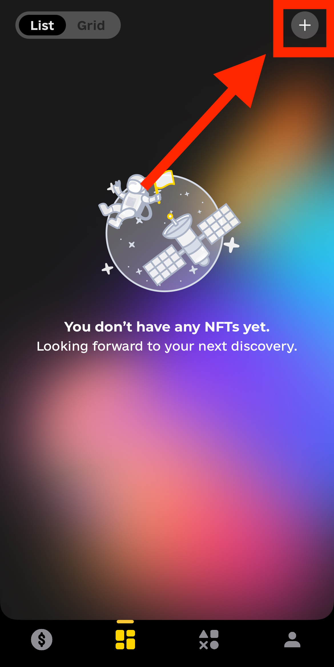 For your non-fungible tokens (NFTs), first, select the add collection button found on the NFT page of Flow Wallet: